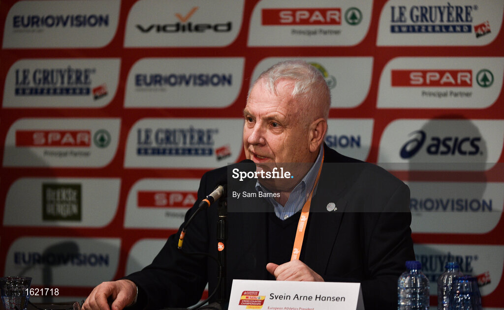 8 December 2018; Svein Arne Hansen, President of European Athletics speaking during the European Cross Country Press Conference at Beekse Bergen Safari Park in Tilburg, Netherlands. Photo by Sam Barnes/Sportsfile