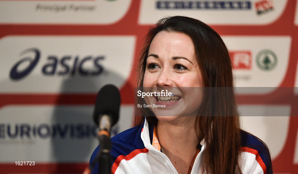 8 December 2018; Jessica Piasecki of Great Britain speaking during the European Cross Country Press Conference at Beekse Bergen Safari Park in Tilburg, Netherlands. Photo by Sam Barnes/Sportsfile