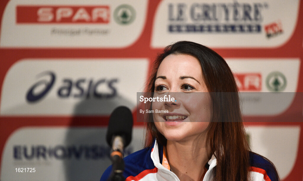 8 December 2018; Jessica Piasecki of Great Britain speaking during the European Cross Country Press Conference at Beekse Bergen Safari Park in Tilburg, Netherlands. Photo by Sam Barnes/Sportsfile
