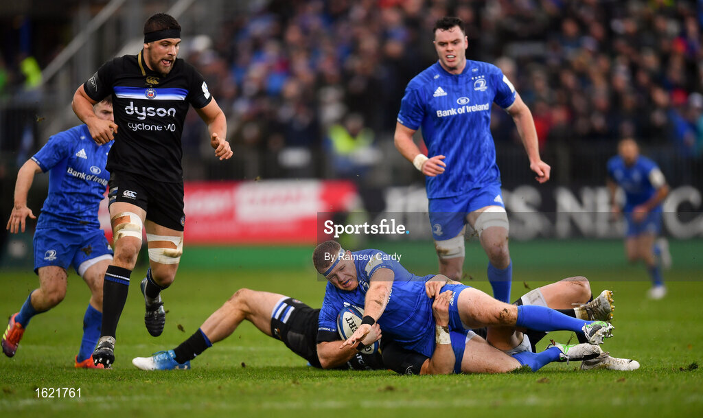 8 December 2018; Seán Cronin of Leinster is tackled by James Wilson, left, and Jamie Roberts of Bath during the European Rugby Champions Cup Pool 1 Round 3 match between Bath and Leinster at the Recreation Ground in Bath, England. Photo by Ramsey Cardy/Sportsfile
