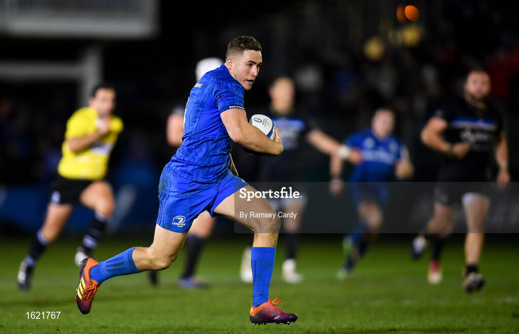 8 December 2018; Jordan Larmour of Leinster on his way to scoring his side's second try during the European Rugby Champions Cup Pool 1 Round 3 match between Bath and Leinster at the Recreation Ground in Bath, England. Photo by Ramsey Cardy/Sportsfile
