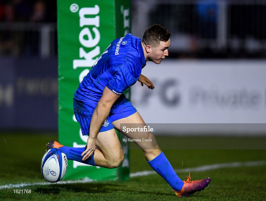 8 December 2018; Jordan Larmour of Leinster goes over to score his side's second try during the European Rugby Champions Cup Pool 1 Round 3 match between Bath and Leinster at the Recreation Ground in Bath, England. Photo by Ramsey Cardy/Sportsfile
