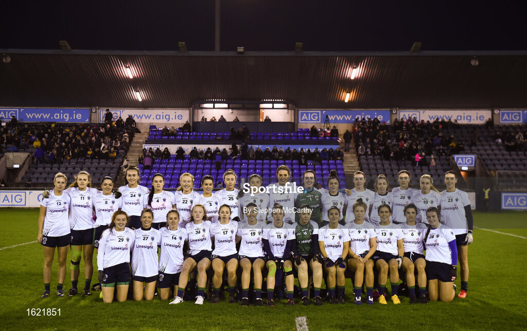 8 December 2018; The Foxrock-Cabinteely squad prior to the All-Ireland Ladies Football Senior Club Championship Final match between Foxrock-Cabinteely, Dublin, and Mourneabbey, Cork, at Parnell Park in Dublin. Photo by Stephen McCarthy/Sportsfile