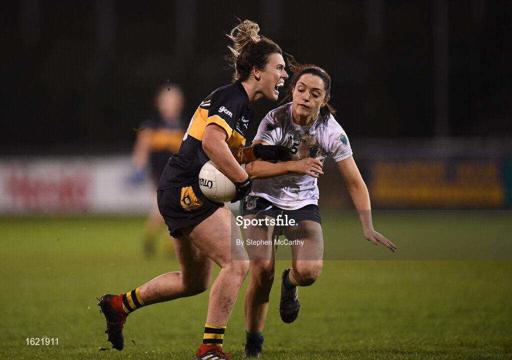 8 December 2018; Doireann O'Sullivan of Mourneabbey in action against Sinéad Goldrick of Foxrock-Cabinteely during the All-Ireland Ladies Football Senior Club Championship Final match between Mourneabbey and Foxrock-Cabinteely at Parnell Park in Dublin. Photo by Stephen McCarthy/Sportsfile