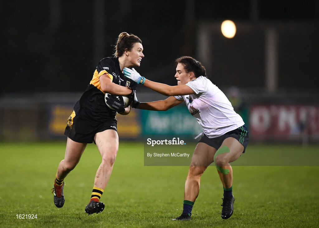 8 December 2018; Doireann O'Sullivan of Mourneabbey in action against Emma McDonagh of Foxrock-Cabinteely during the All-Ireland Ladies Football Senior Club Championship Final match between Mourneabbey and Foxrock-Cabinteely at Parnell Park in Dublin. Photo by Stephen McCarthy/Sportsfile