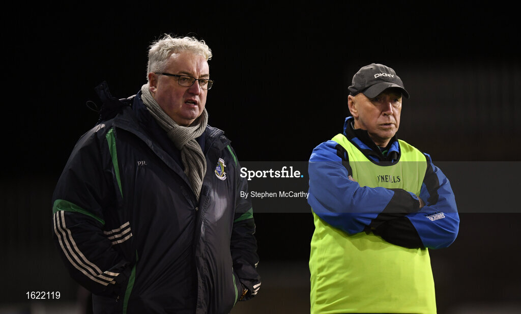 8 December 2018; Foxrock-Cabinteely manager Pat Ring, left, during the All-Ireland Ladies Football Senior Club Championship Final match between Foxrock-Cabinteely, Dublin, and Mourneabbey, Cork, at Parnell Park in Dublin. Photo by Stephen McCarthy/Sportsfile