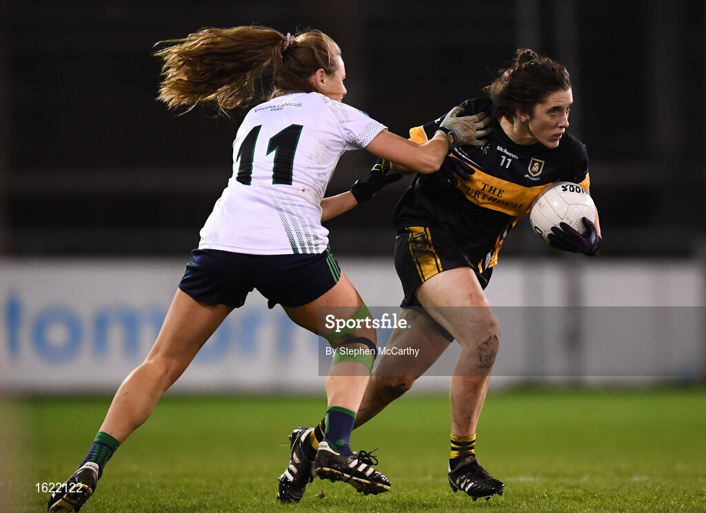 8 December 2018; Ciara O'Sullivan of Mourneabbey and Amy Connolly of Foxrock-Cabinteely during the All-Ireland Ladies Football Senior Club Championship Final match between Foxrock-Cabinteely, Dublin, and Mourneabbey, Cork, at Parnell Park in Dublin. Photo by Stephen McCarthy/Sportsfile