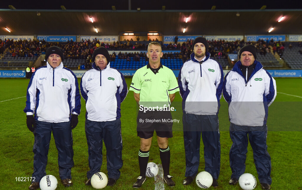 8 December 2018; Referee Brendan Rice and his officials prior to the All-Ireland Ladies Football Senior Club Championship Final match between Foxrock-Cabinteely, Dublin, and Mourneabbey, Cork, at Parnell Park in Dublin. Photo by Stephen McCarthy/Sportsfile