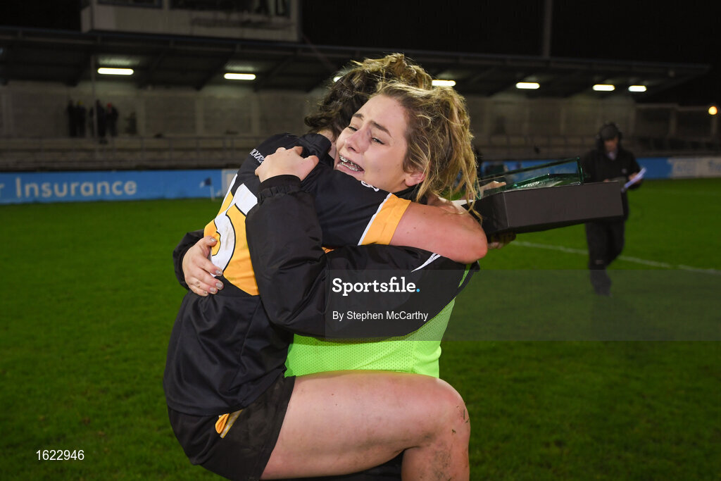 8 December 2018; Doireann O'Sullivan, left, and Caoimhe Moore of Mourneabbey celebrate following the All-Ireland Ladies Football Senior Club Championship Final match between Foxrock-Cabinteely, Dublin, and Mourneabbey, Cork, at Parnell Park in Dublin. Photo by Stephen McCarthy/Sportsfile