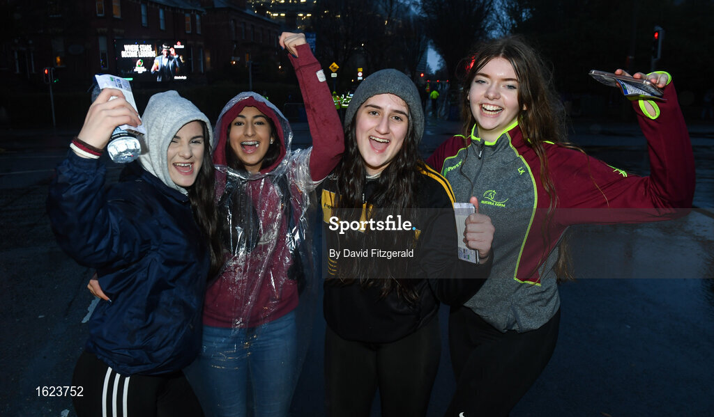 15 December 2018; Leinster supporters, from left, Eleanor Stone, Ashling Doyle, Cáit Healy and Lauren Kelly, all aged 14 and from Kilkenny, prior to the Heineken Champions Cup Pool 1 Round 4 match between Leinster and Bath at the Aviva Stadium in Dublin. Photo by David Fitzgerald/Sportsfile