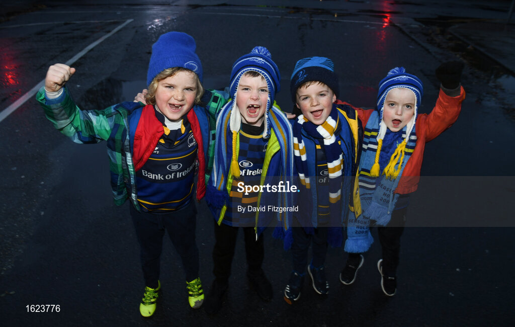 15 December 2018; Leinster supporters, from left, Peter Murphy, Bill Doyle, both aged 8, Austin Murphy and Jack Doyle, both aged 6, from Blessington, County Wicklow, prior to the Heineken Champions Cup Pool 1 Round 4 match between Leinster and Bath at the Aviva Stadium in Dublin. Photo by David Fitzgerald/Sportsfile