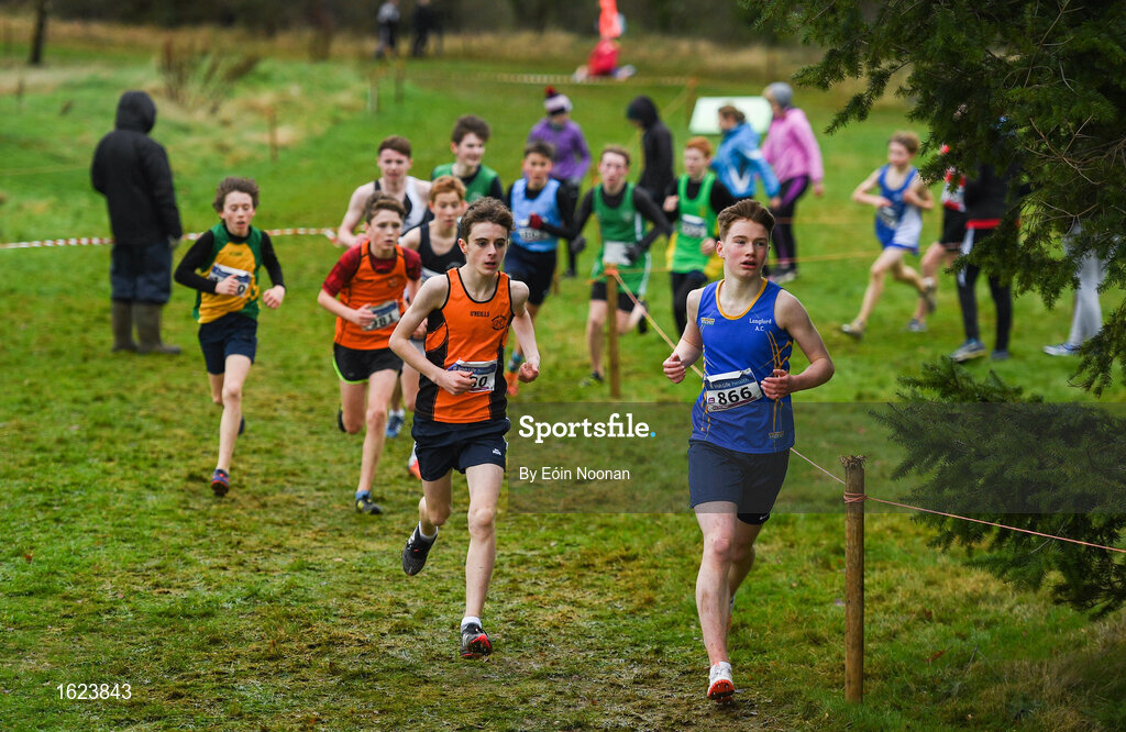 15 December 2018; Athletes competing in the boys U15 3500m race during the Irish Life Health Novice & Juvenile Uneven Age Cross Country Championships 2018 at Navan Adventure Sports, Navan Racecourse in Meath. Photo by Eóin Noonan/Sportsfile