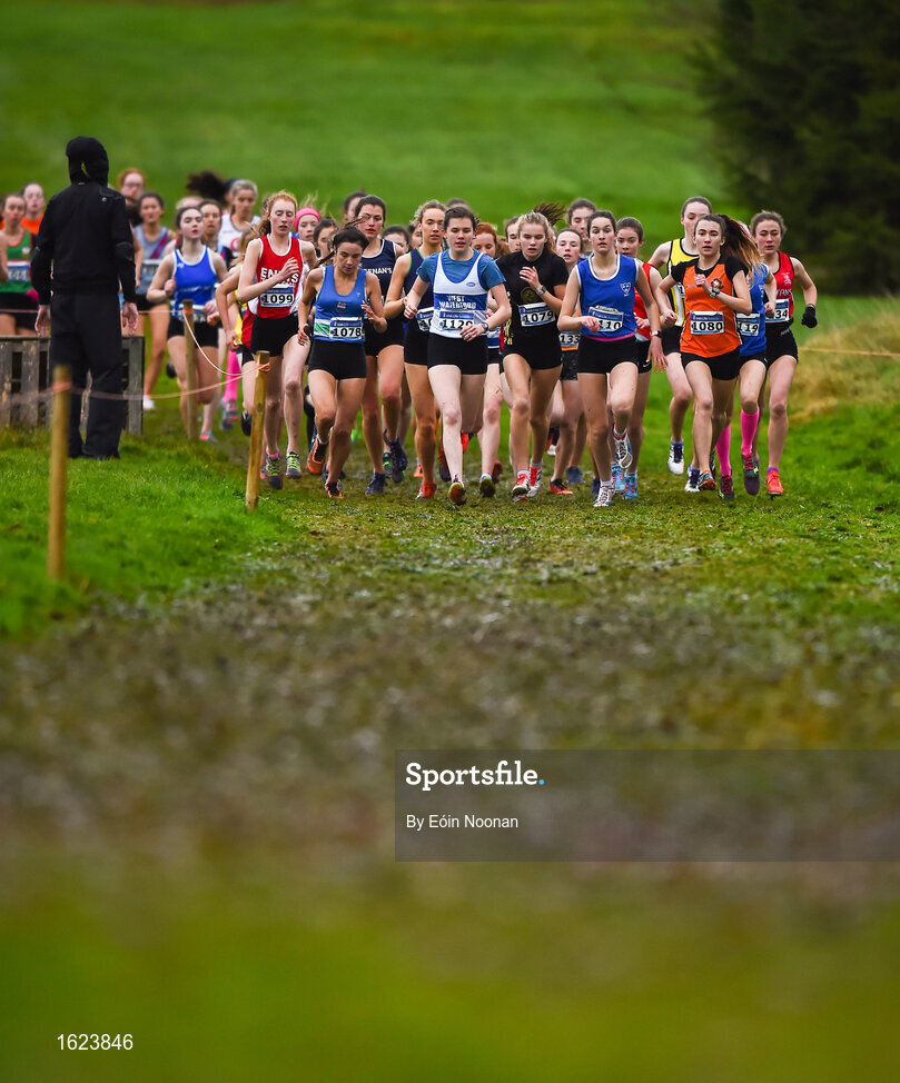 15 December 2018; Athletes competing in the girls U17 4000m race during the Irish Life Health Novice & Juvenile Uneven Age Cross Country Championships 2018 at Navan Adventure Sports, Navan Racecourse in Meath. Photo by Eóin Noonan/Sportsfile