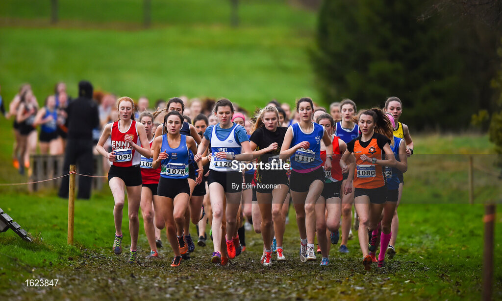 15 December 2018; Athletes competing in the girls U17 4000m race during the Irish Life Health Novice & Juvenile Uneven Age Cross Country Championships 2018 at Navan Adventure Sports, Navan Racecourse in Meath. Photo by Eóin Noonan/Sportsfile