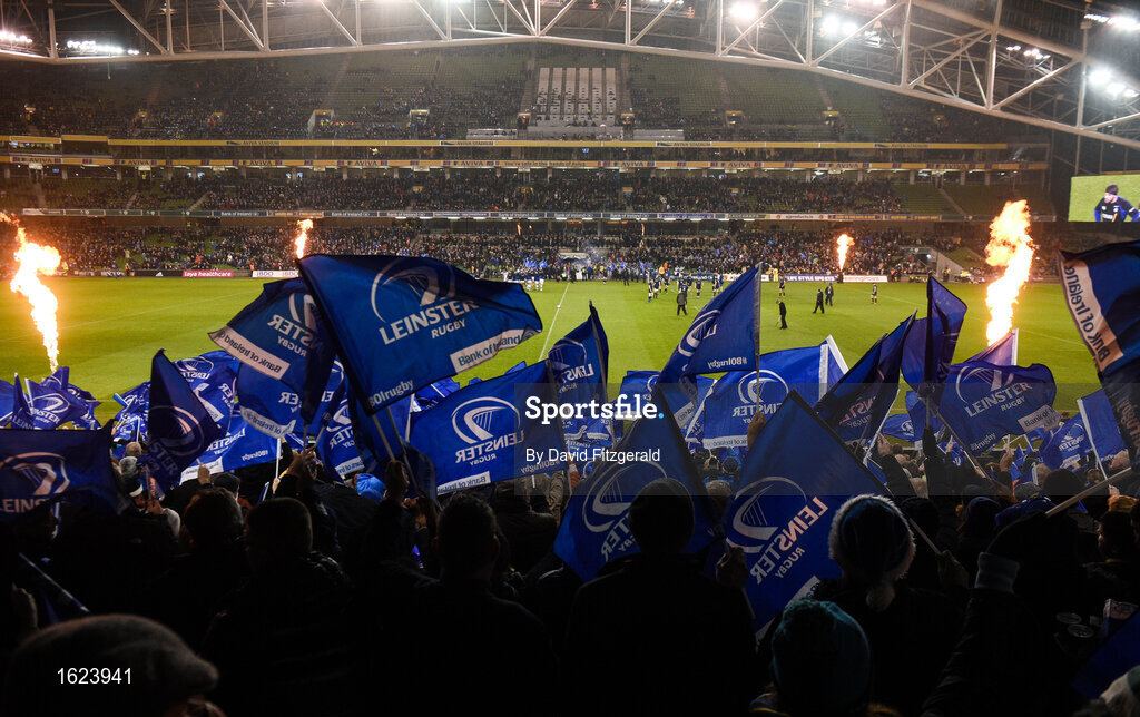 15 December 2018; Both teams run out prior to the Heineken Champions Cup Pool 1 Round 4 match between Leinster and Bath at the Aviva Stadium in Dublin. Photo by David Fitzgerald/Sportsfile