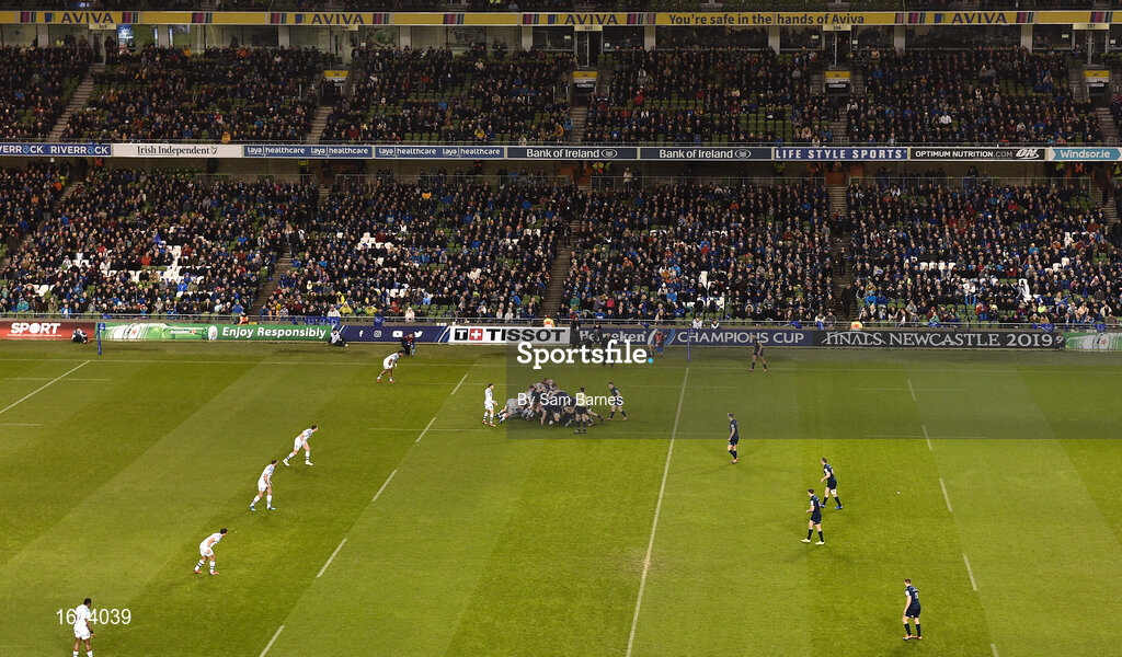 15 December 2018; A general view of a scrum during the Heineken Champions Cup Pool 1 Round 4 match between Leinster and Bath at the Aviva Stadium in Dublin. Photo by Sam Barnes/Sportsfile