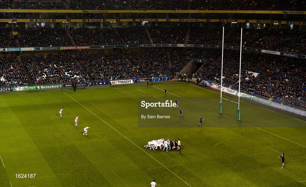 15 December 2018; A general view of a scrum during the Heineken Champions Cup Pool 1 Round 4 match between Leinster and Bath at the Aviva Stadium in Dublin. Photo by Sam Barnes/Sportsfile