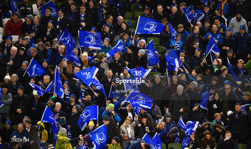 15 December 2018; Supporters celebrate a try during the Heineken Champions Cup Pool 1 Round 4 match between Leinster and Bath at the Aviva Stadium in Dublin. Photo by Sam Barnes/Sportsfile