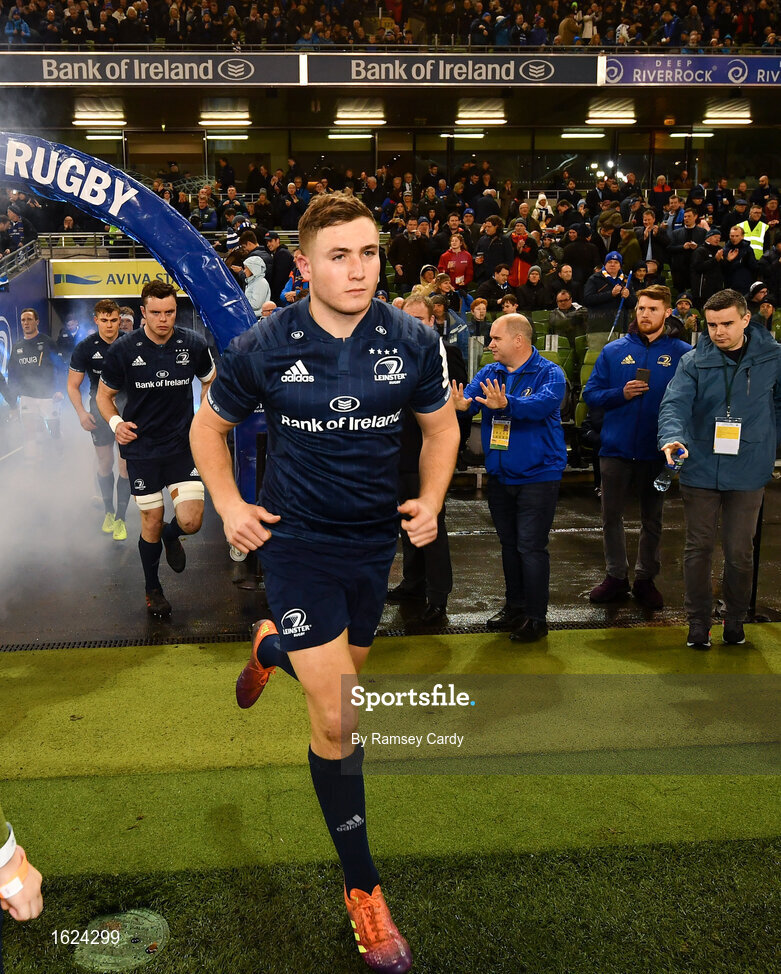 15 December 2018; Jordan Larmour of Leinster ahead of the Heineken Champions Cup Pool 1 Round 4 match between Leinster and Bath at the Aviva Stadium in Dublin. Photo by Ramsey Cardy/Sportsfile