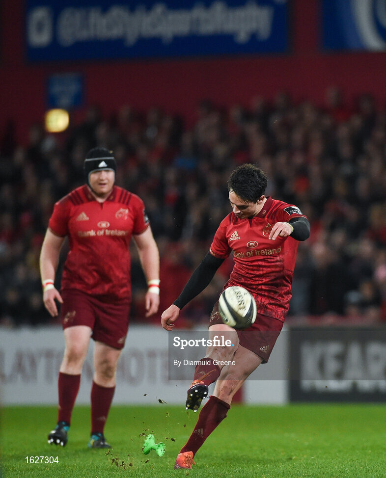 29 December 2018; Joey Carbery kicks a penalty during the Guinness PRO14 Round 12 match between Munster and Leinster at Thomond Park in Limerick. Photo by Diarmuid Greene/Sportsfile