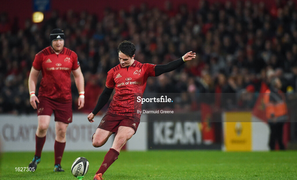 29 December 2018; Joey Carbery kicks a penalty during the Guinness PRO14 Round 12 match between Munster and Leinster at Thomond Park in Limerick. Photo by Diarmuid Greene/Sportsfile