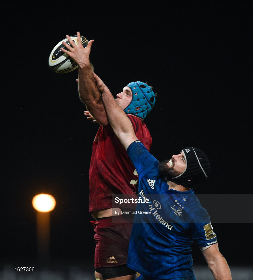 29 December 2018; Tadhg Beirne of Munster contests a lineout with Scott Fardy of Leinster during the Guinness PRO14 Round 12 match between Munster and Leinster at Thomond Park in Limerick. Photo by Diarmuid Greene/Sportsfile