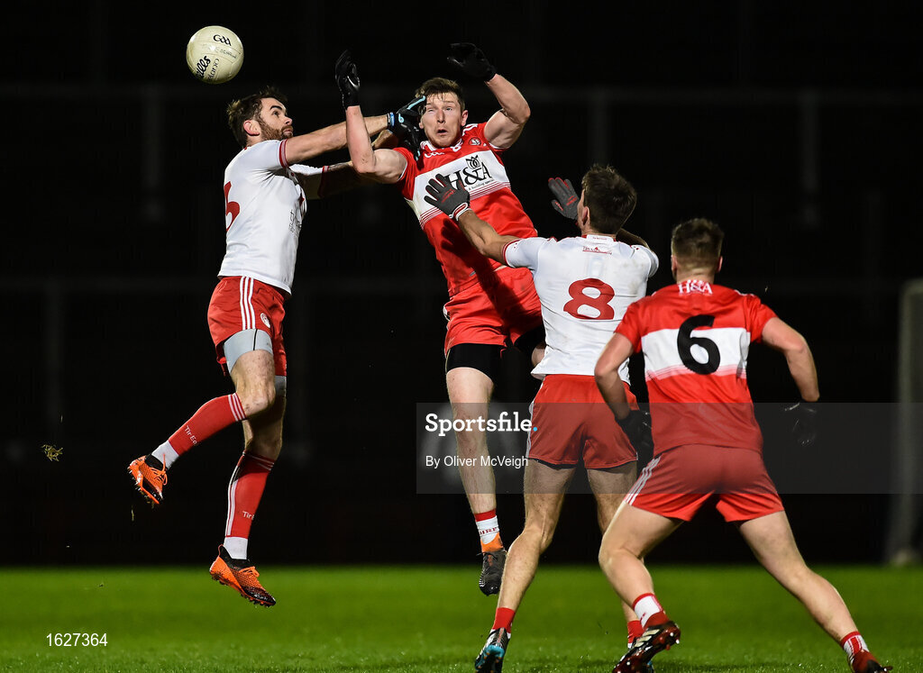 20 December 2018; Ronan McNamee of Tyrone in action against Emmet Bradley of Derry during the Bank of Ireland Dr. McKenna Cup Round 1 match between Derry and Tyrone at Celtic Park, Derry. Photo by Oliver McVeigh/Sportsfile
