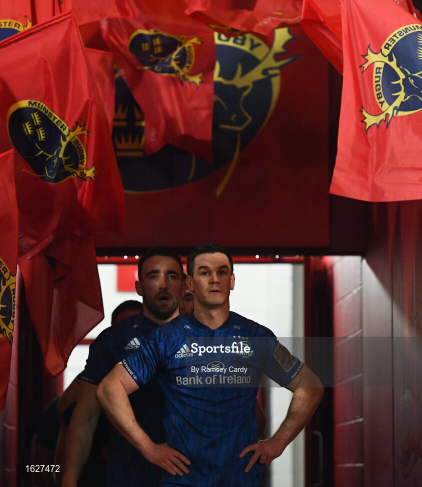 29 December 2018; Leinster captain Jonathan Sexton leads his side out ahead of the Guinness PRO14 Round 12 match between Munster and Leinster at Thomond Park in Limerick. Photo by Ramsey Cardy/Sportsfile
