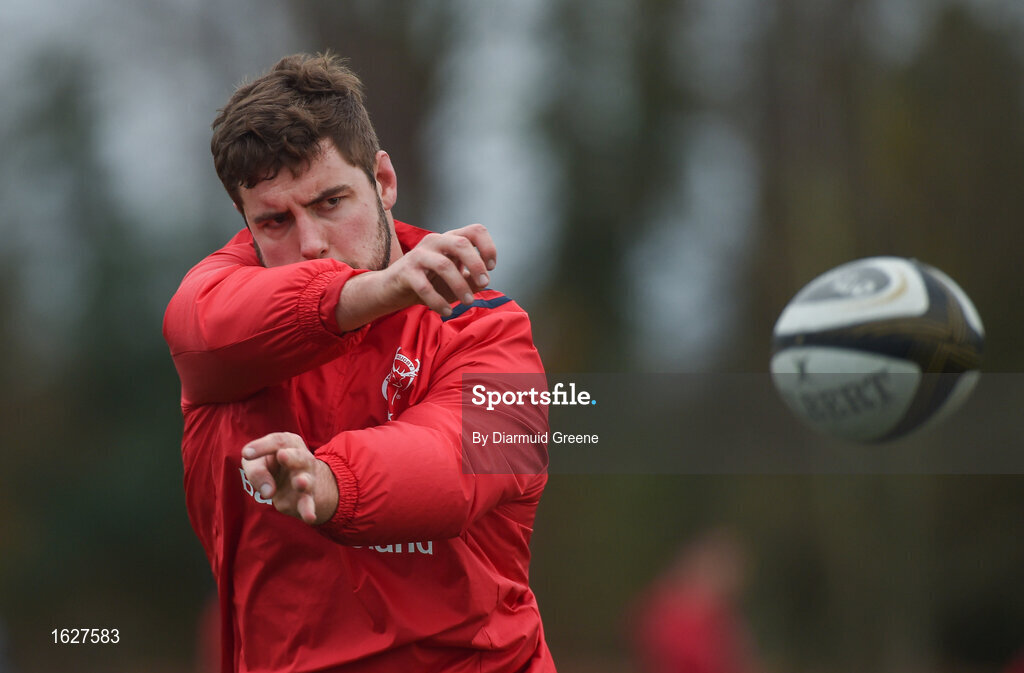 31 December 2018; Rhys Marshall during Munster Rugby squad training at the University of Limerick in Limerick. Photo by Diarmuid Greene/Sportsfile