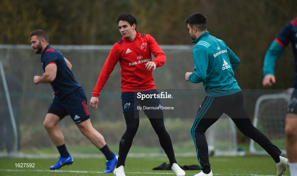 31 December 2018; Joey Carbery and Conor Murray during Munster Rugby squad training at the University of Limerick in Limerick. Photo by Diarmuid Greene/Sportsfile