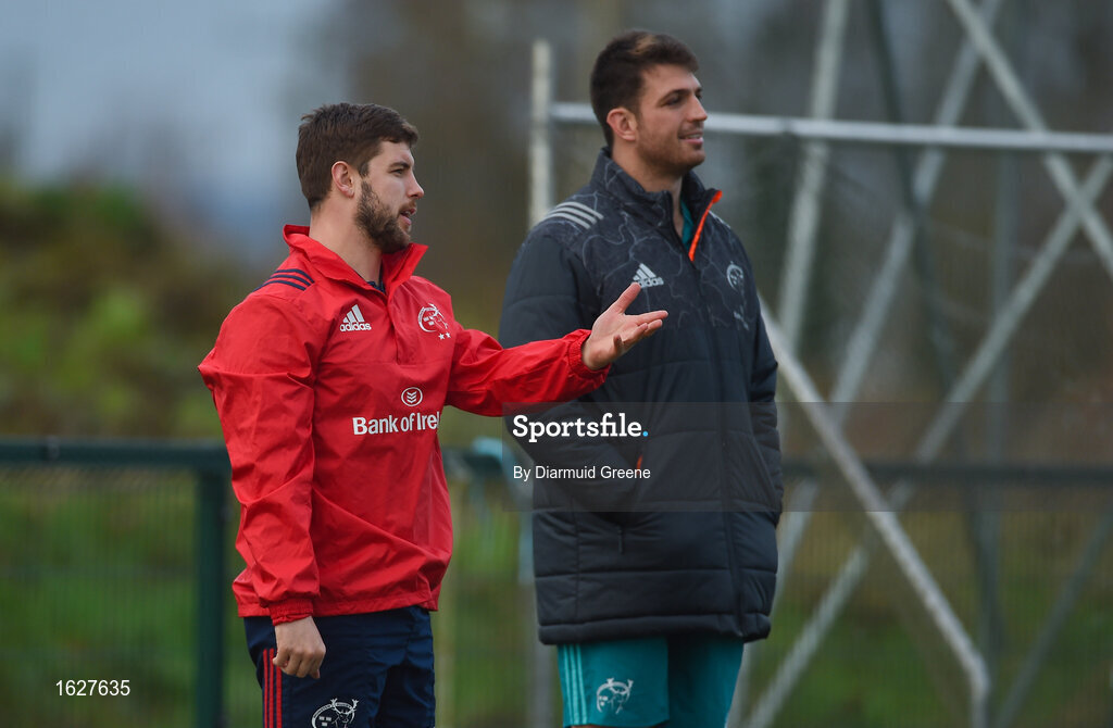 31 December 2018; Rhys Marshall and Jean Kleyn during Munster Rugby squad training at the University of Limerick in Limerick. Photo by Diarmuid Greene/Sportsfile