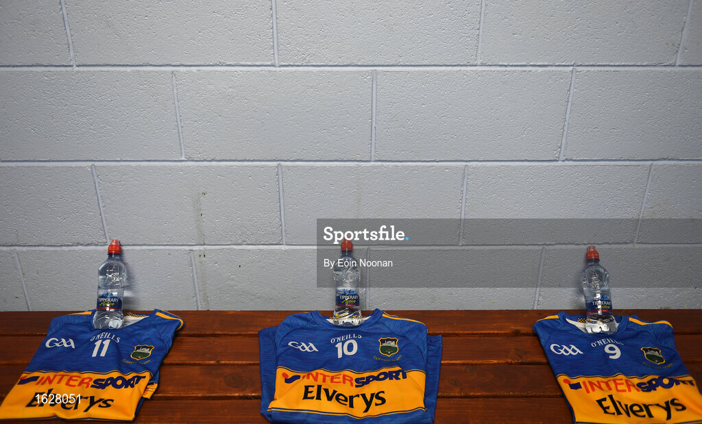 5 January 2019; A general view of Tipperary jerseys laid out in the dressing room ahead of the Co-Op Superstores Munster Hurling League 2019 match between Tipperary and Kerry at MacDonagh Park in Nenagh, Co. Tipperary. Photo by Eóin Noonan/Sportsfile