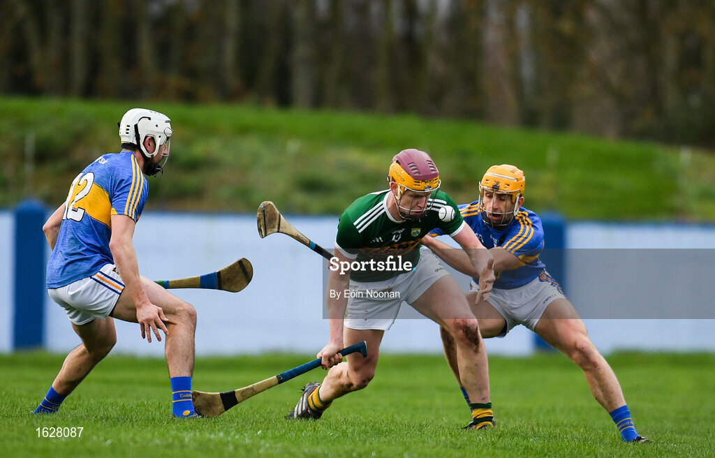 5 January 2019; Micheal O'Leary of Kerry in action against Barry Heffernan of Tipperary during the Co-Op Superstores Munster Hurling League 2019 match between Tipperary and Kerry at MacDonagh Park in Nenagh, Co. Tipperary. Photo by Eóin Noonan/Sportsfile
