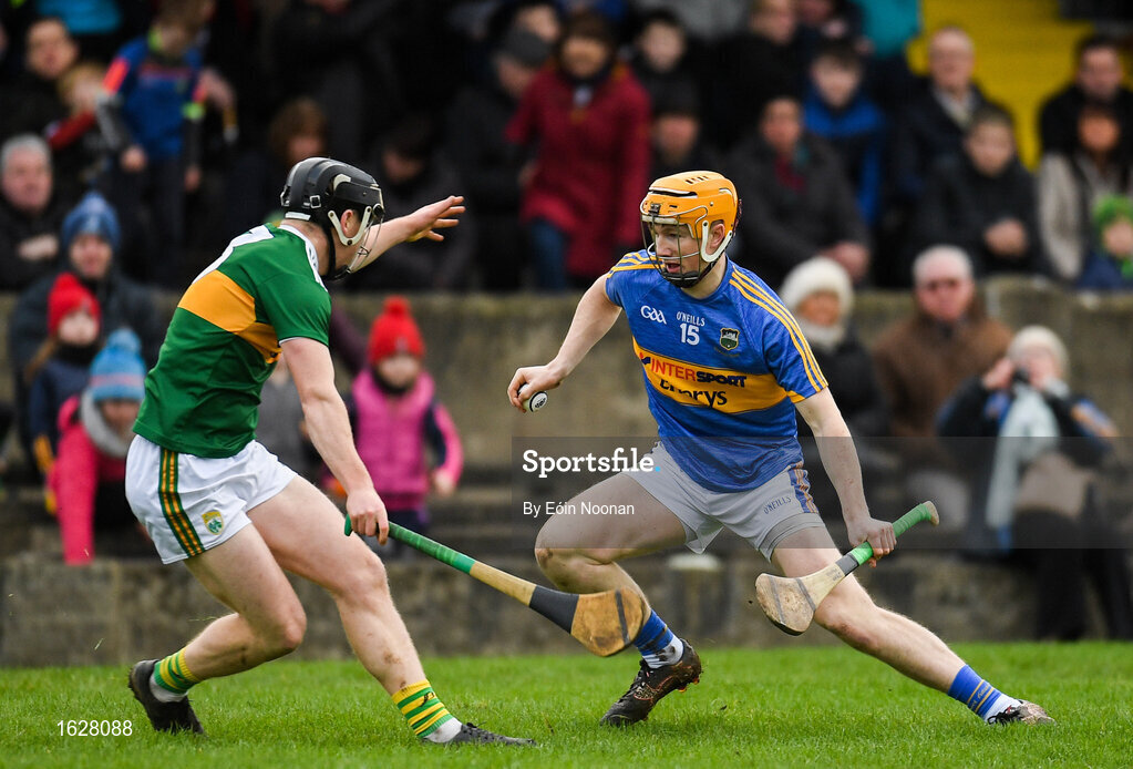5 January 2019; Jake Morris of Tipperary in action against James O'Connor of Kerry during the Co-Op Superstores Munster Hurling League 2019 match between Tipperary and Kerry at MacDonagh Park in Nenagh, Co. Tipperary. Photo by Eóin Noonan/Sportsfile