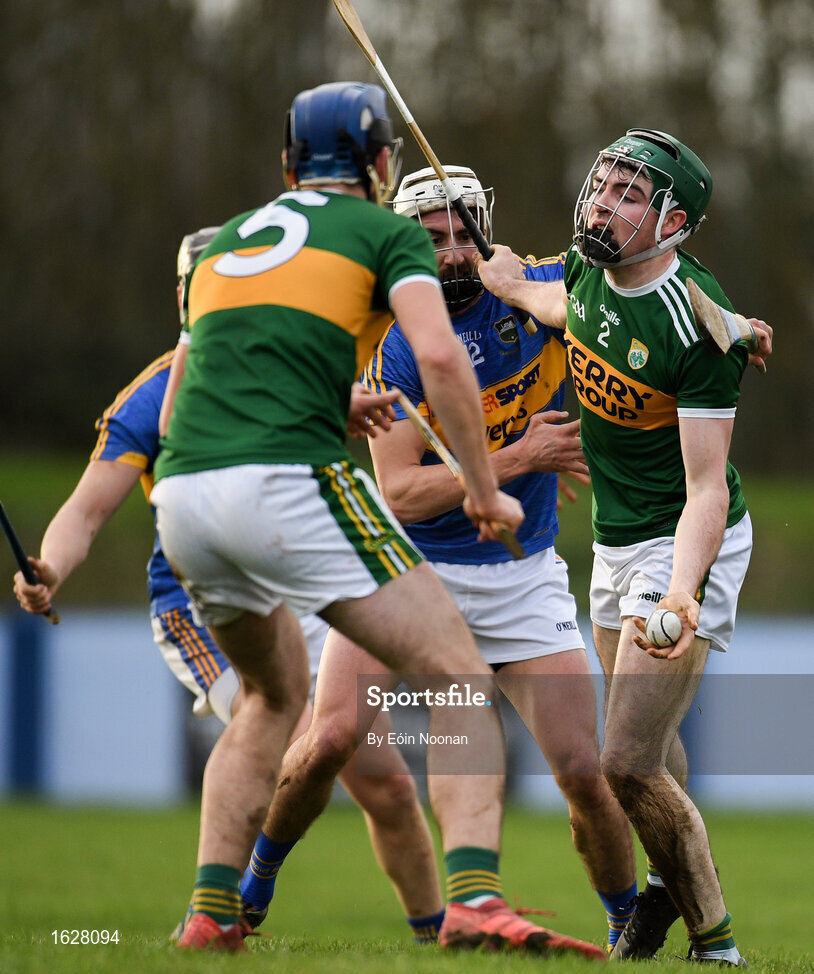 5 January 2019; Eric Leen of Kerry is tackled by Patrick Maher of Tipperary during the Co-Op Superstores Munster Hurling League 2019 match between Tipperary and Kerry at MacDonagh Park in Nenagh, Co. Tipperary. Photo by Eóin Noonan/Sportsfile