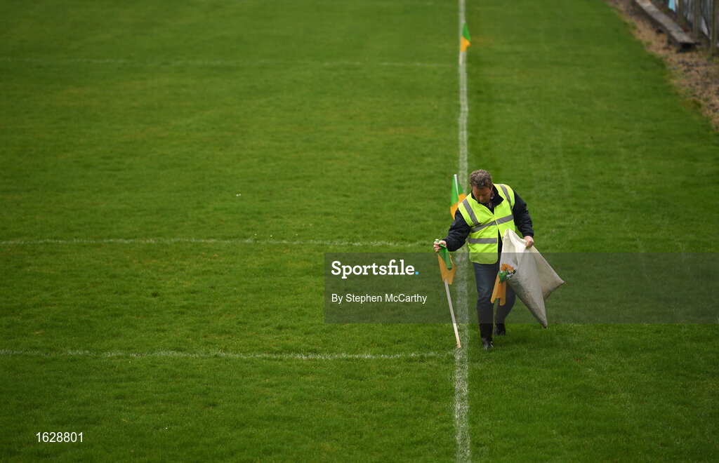 6 January 2019; Mícheál Doherty puts out the flags prior to the Connacht FBD League Preliminary Round match between Leitrim and Mayo at Avantcard Páirc Seán Mac Diarmada in Carrick-on-Shannon, Co Leitrim. Photo by Stephen McCarthy/Sportsfile