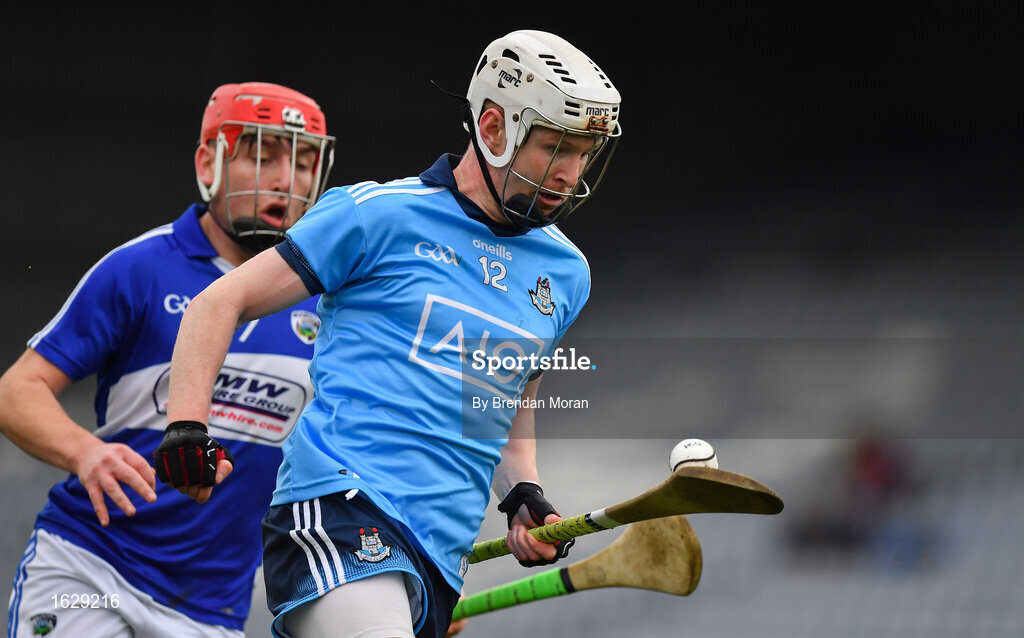 6 January 2019; Fintan McGibb of Dublin in action against Eric Killeen of Laois during the Bord na Mona Walsh Cup Round 3 match between Laois and Dublin at O'Moore Park in Portlaoise, Laois. Photo by Brendan Moran/Sportsfile