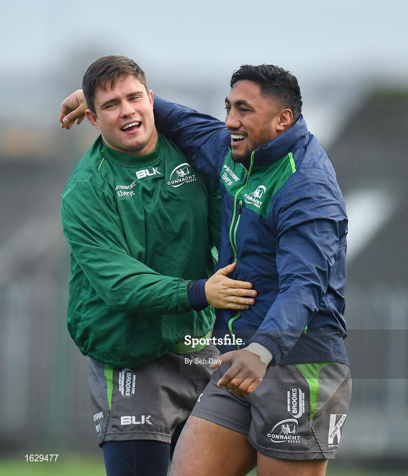 8 January 2019; Dave Heffernan, left, and Bundee Aki during Connacht Rugby squad training at the Sportsground in Galway. Photo by Seb Daly/Sportsfile