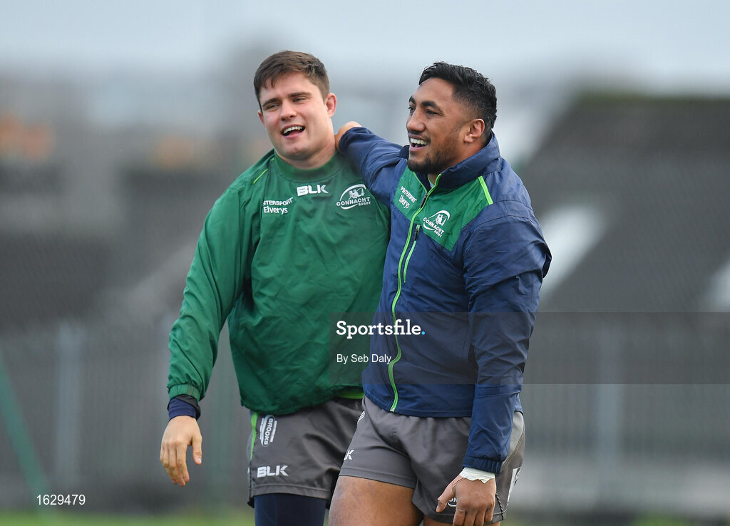 8 January 2019; Dave Heffernan, left, and Bundee Aki during Connacht Rugby squad training at the Sportsground in Galway. Photo by Seb Daly/Sportsfile