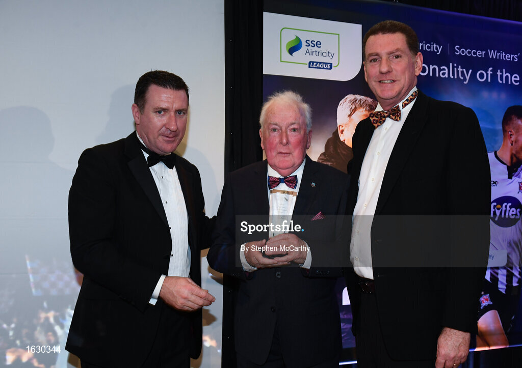 11 January 2019; Drogheda United's Vincent Hoey is presented with the Liam Tuohy Special Merit Award during the SSE Airtricity Soccer Writers’ Association of Ireland Awards 2018 at the Conrad Hotel in Dublin. Photo by Stephen McCarthy/Sportsfile