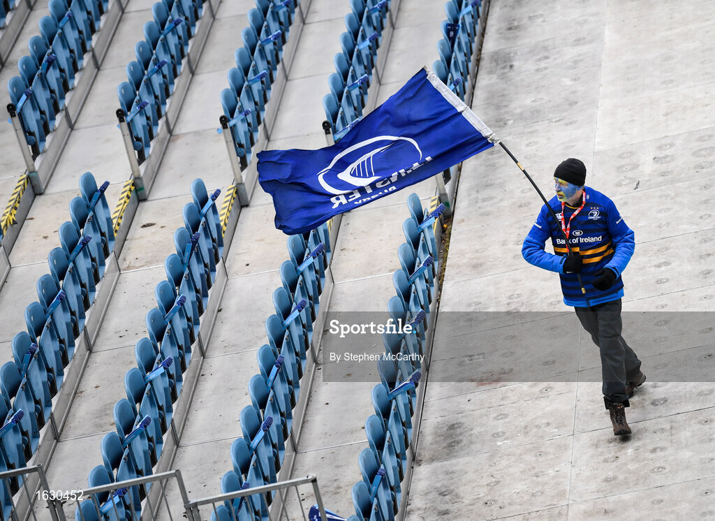 12 January 2019; Leinster supporter Eoin O'Driscoll, from Goatstown, Dublin, arrives prior to the Heineken Champions Cup Pool 1 Round 5 match between Leinster and Toulouse at the RDS Arena in Dublin. Photo by Stephen McCarthy/Sportsfile