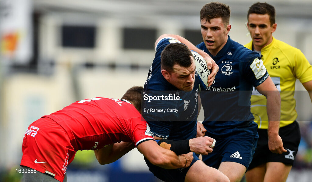 12 January 2019; Cian Healy of Leinster is tackled by Antoine Dupont of Toulouse during the Heineken Champions Cup Pool 1 Round 5 match between Leinster and Toulouse at the RDS Arena in Dublin. Photo by Ramsey Cardy/Sportsfile