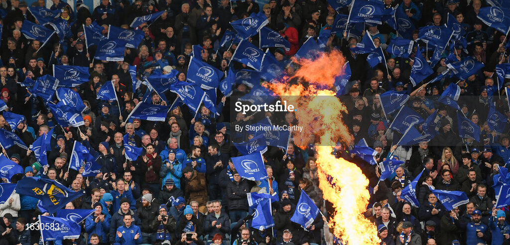 12 January 2019; Leinster supporters during the Heineken Champions Cup Pool 1 Round 5 match between Leinster and Toulouse at the RDS Arena in Dublin. Photo by Stephen McCarthy/Sportsfile