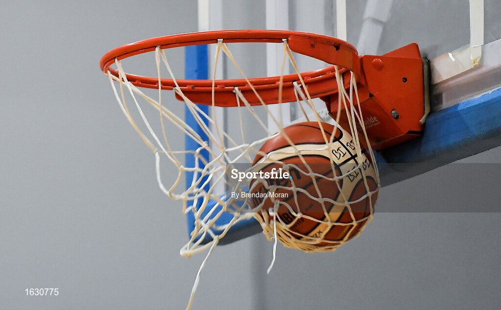 12 January 2019; A general view of a basketball and basketball ring and net during the Hula Hoops Under 20 Men’s National Cup semi-final match between Portlaoise Panthers and Dublin Lions at the Mardyke Arena UCC in Cork. Photo by Brendan Moran/Sportsfile