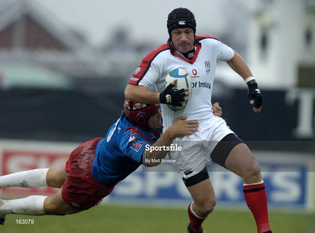 11 December 2004; David Humphreys, Ulster, is tackled by David Skrela, Stade Francais. Heineken European Cup 2004-2005, Pool 6, Round 4, Ulster v Stade Francais, Ravenhill, Belfast. Picture credit; Matt Browne / SPORTSFILE