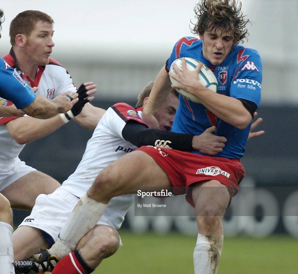 11 December 2004; Brian Liebenberg, Stade Francais, is tackled by Tommy Bowe, Ulster. Heineken European Cup 2004-2005, Pool 6, Round 4, Ulster v Stade Francais, Ravenhill, Belfast. Picture credit; Matt Browne / SPORTSFILE