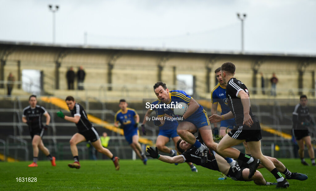 13 January 2019; Donie Smith of Roscommon in action against John Francis Carr of Sligo during the Connacht FBD League semi-final match between Roscommon and Sligo at Dr. Hyde Park in Roscommon. Photo by David Fitzgerald/Sportsfile