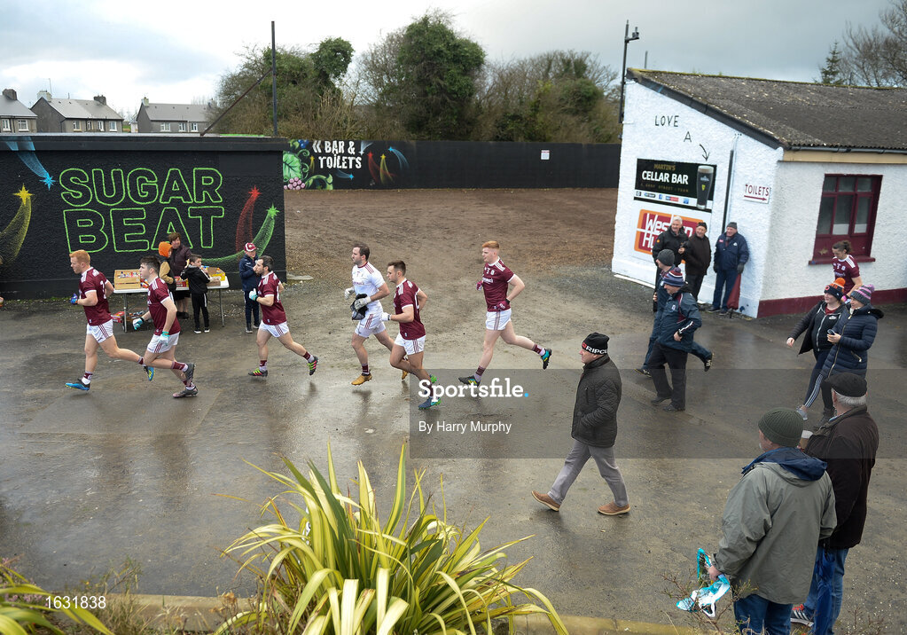 13 January 2019; Galway players run to the pitch prior to the Connacht FBD League semi-final match between Galway and Mayo at Tuam Stadium in Galway. Photo by Harry Murphy/Sportsfile