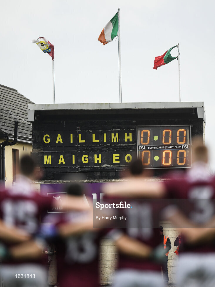 13 January 2019; Galway players stand for Amhrán na bhFiann prior to the Connacht FBD League semi-final match between Galway and Mayo at Tuam Stadium in Galway. Photo by Harry Murphy/Sportsfile