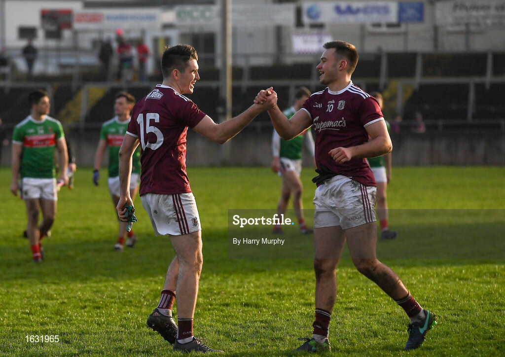13 January 2019; Barry McHugh and Cillian McDaid of Galway celebrate following the Connacht FBD League semi-final match between Galway and Mayo at Tuam Stadium in Galway. Photo by Harry Murphy/Sportsfile